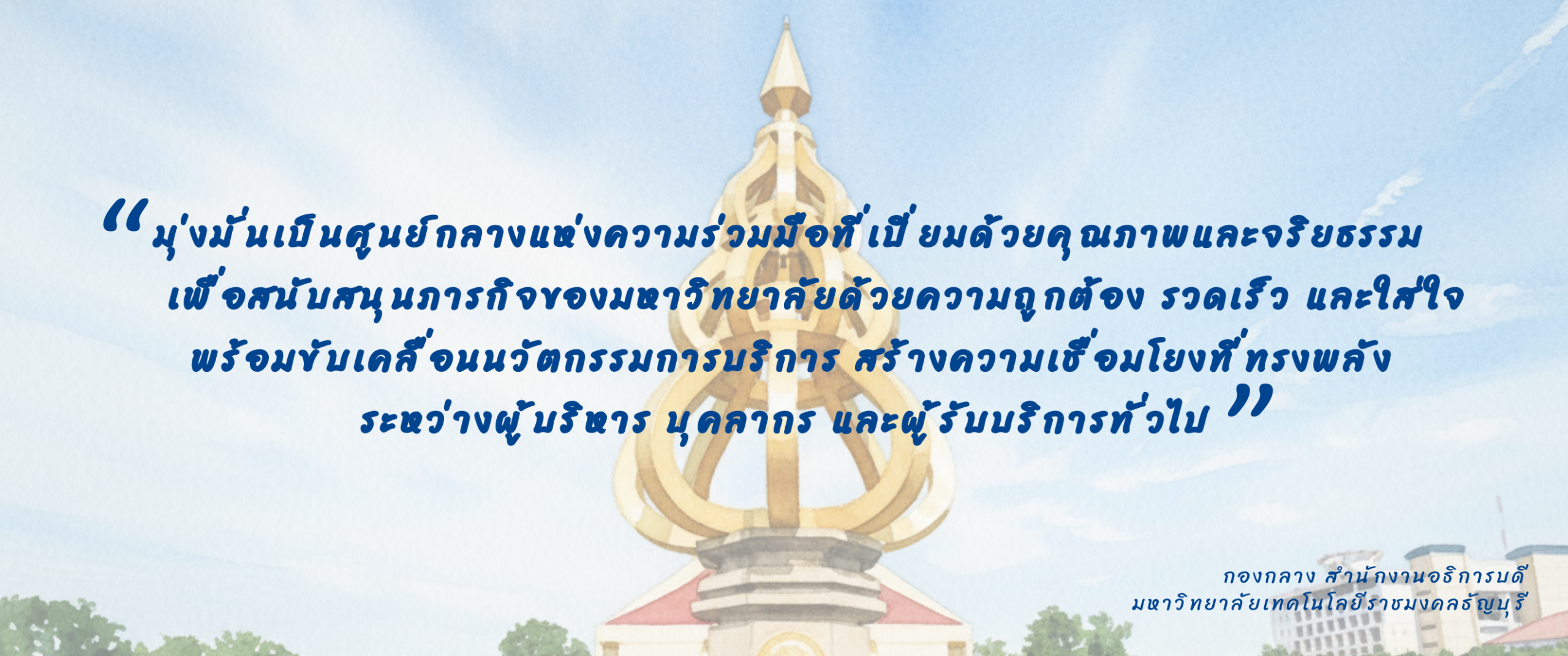 “มืออาชีพ มีใจบริการ ยึดมั่นคุณธรรม ขับเคลื่อนด้วยนวัตกรรม”